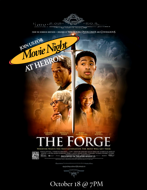 Come and join us for a family friendly movie that will inspire you in your walk with the Lord. We'll be viewing the Kendrick brothers' latest movie, "The Forge." In the movie, Isaiah Wright has some growing up to do. A year out of high school with no plans for his future, Isaiah is challenged by his single mom and a successful businessman to start charting a better course for his life. Through the biblical discipleship from his new mentor, prayers of his mother and a prayer warrior named Miss Clara, Isaiah begins to discover God’s purpose for his life is so much more than he could hope for or imagine.